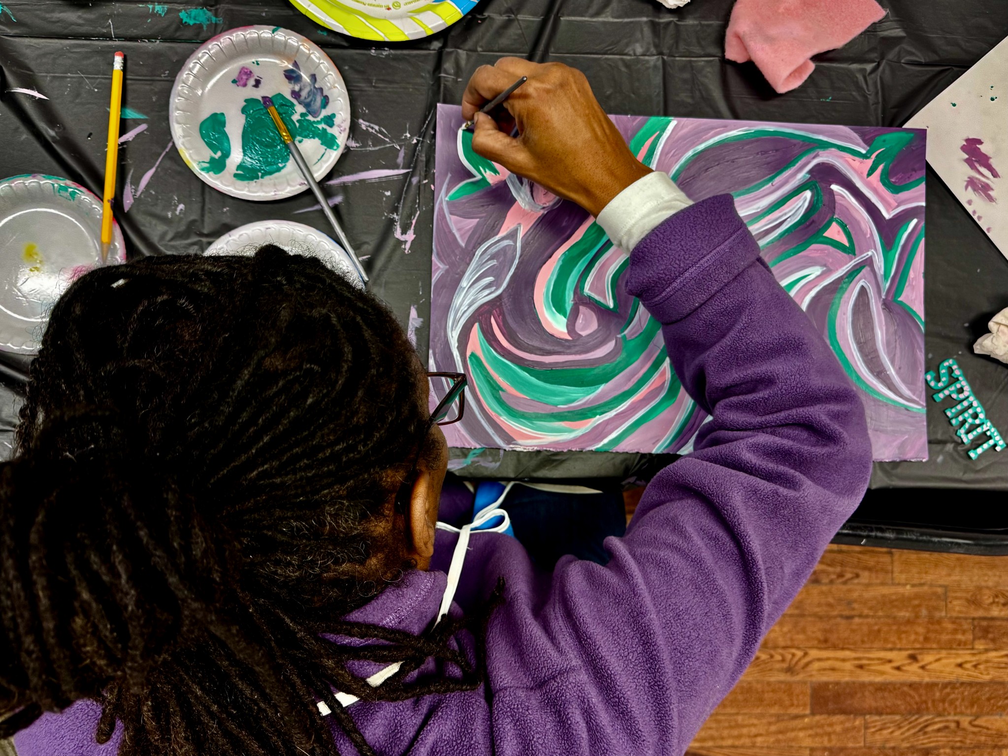 Viewing the elements regarding the color wheel, participants will select 1 color to practice with. Next, each will be producing a visual story guided by Aleathia Brown, master teaching artist