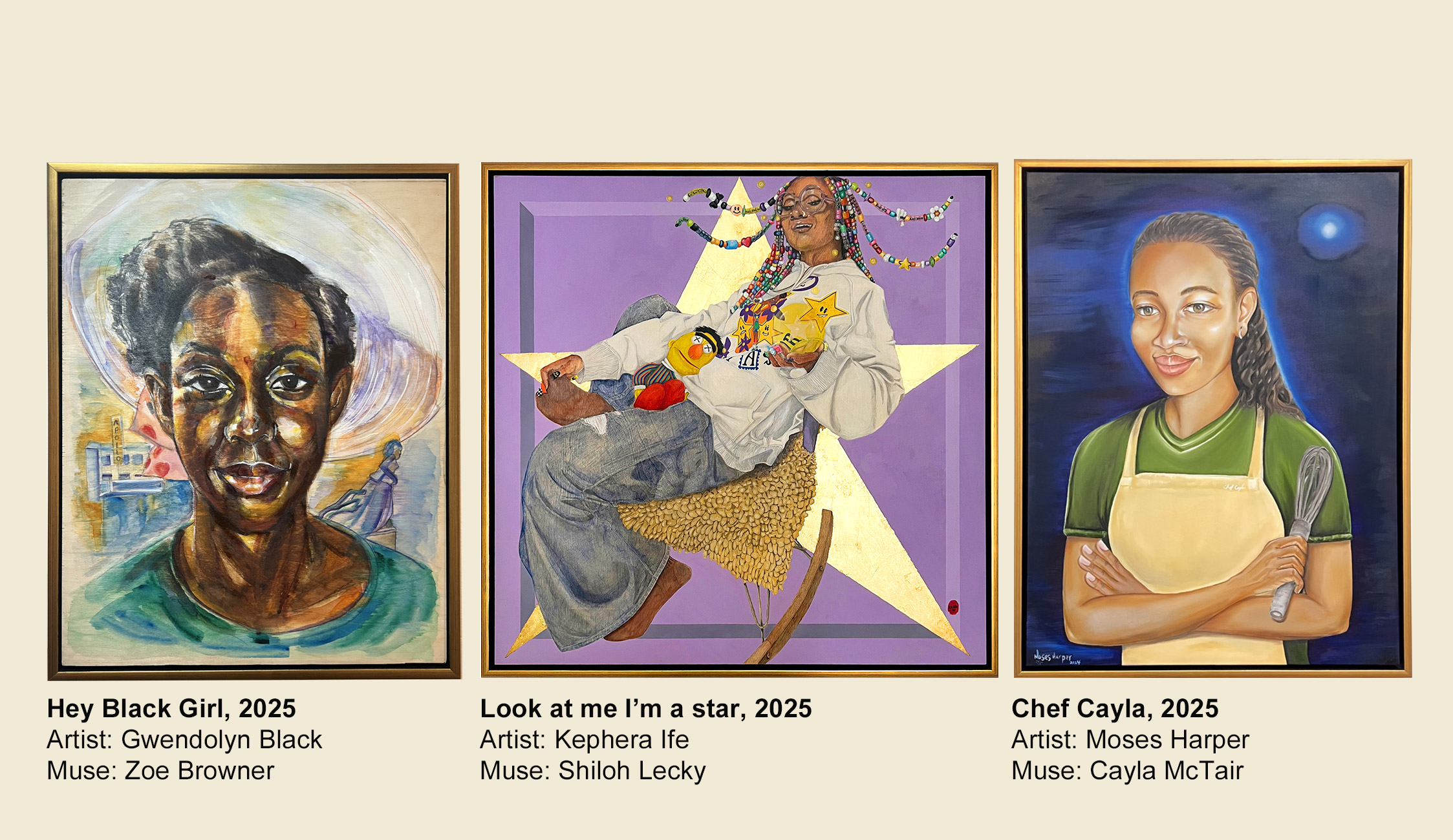 The Children’s Art Carnival (CAC), in partnership with The Colored Girls Museum, has commissioned three additional artists, all from Harlem, to create new portraits to contribute to the traveling series. The artists and their muses are :